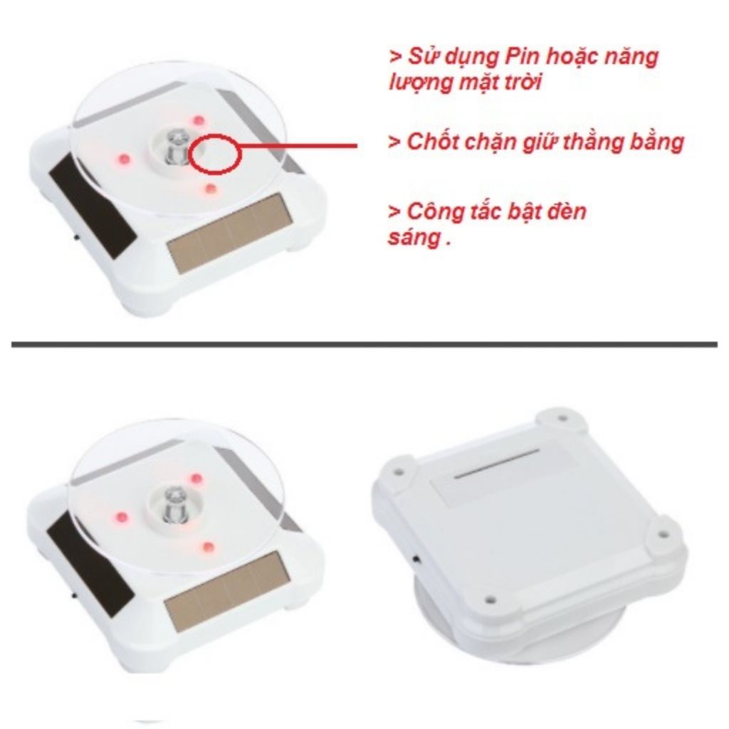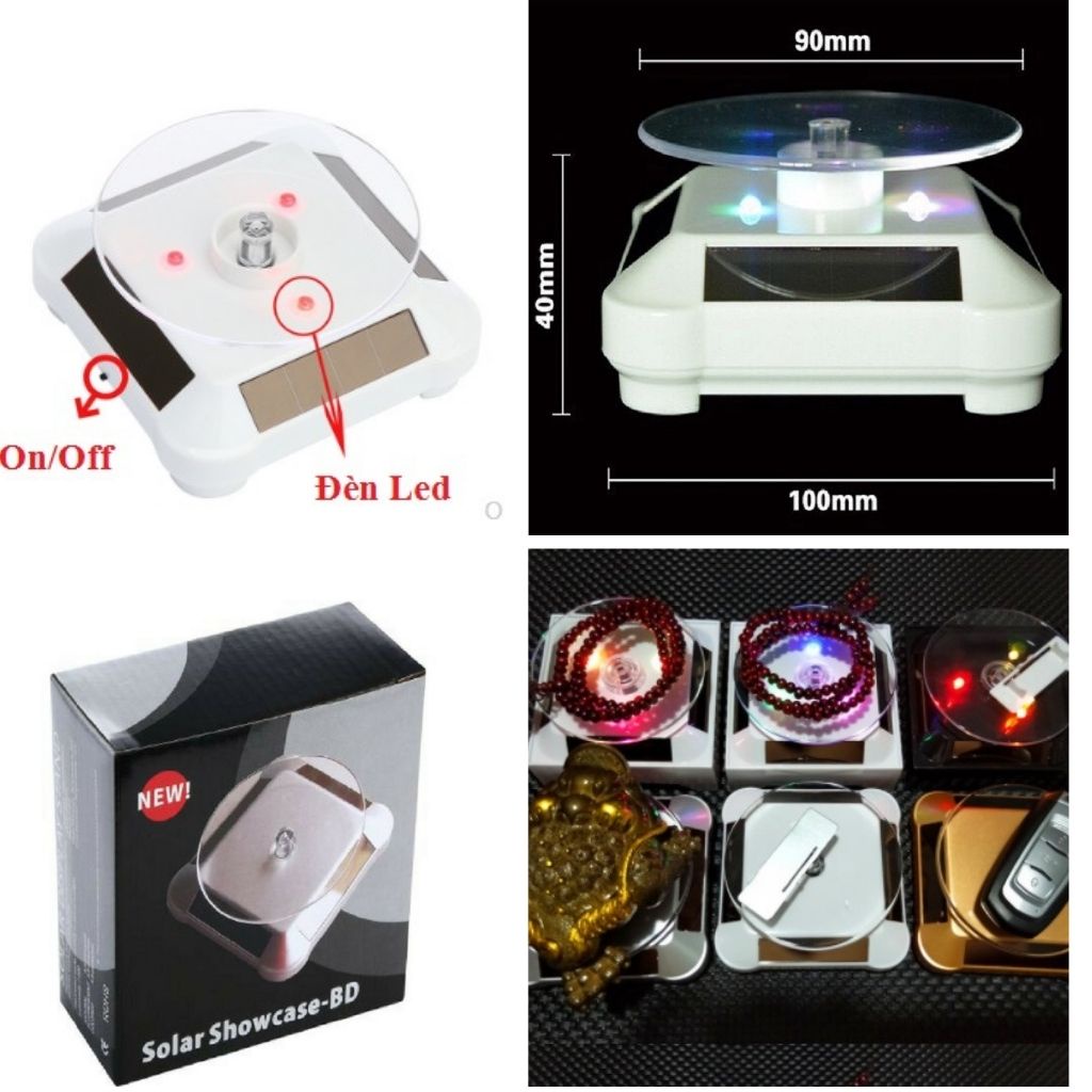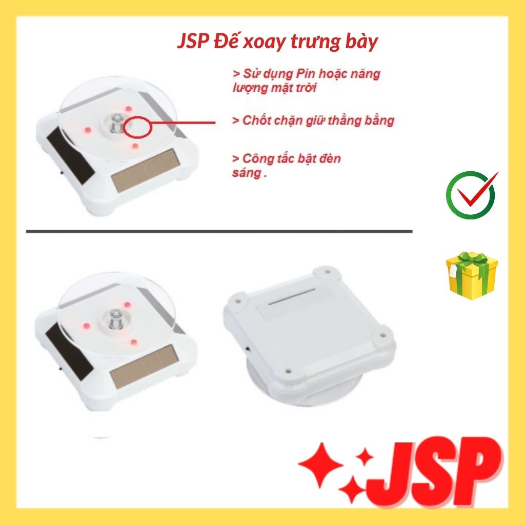 Giới thiệu Đế xoay trưng bày sản phẩm có đèn LED năng lượng mặt trời hoặc pin bàn xoay trưng bày JSP