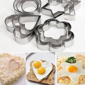 Bộ khuôn tạo hình với chất liệu inox bền, sạch, và an toàn tuyệt đối cho thực phẩm. Dùng xong bạn có thể vệ sinh rất dễ dàng. Khuôn chiên trứng có thiết kế tiện dụng với nhiều hình dạng xinh xắn như ngôi sao, trái tim, hình tròn, hoa... giúp món bánh và trứng chiên của bạn thật bắt mắt và hấp dẫn nhất