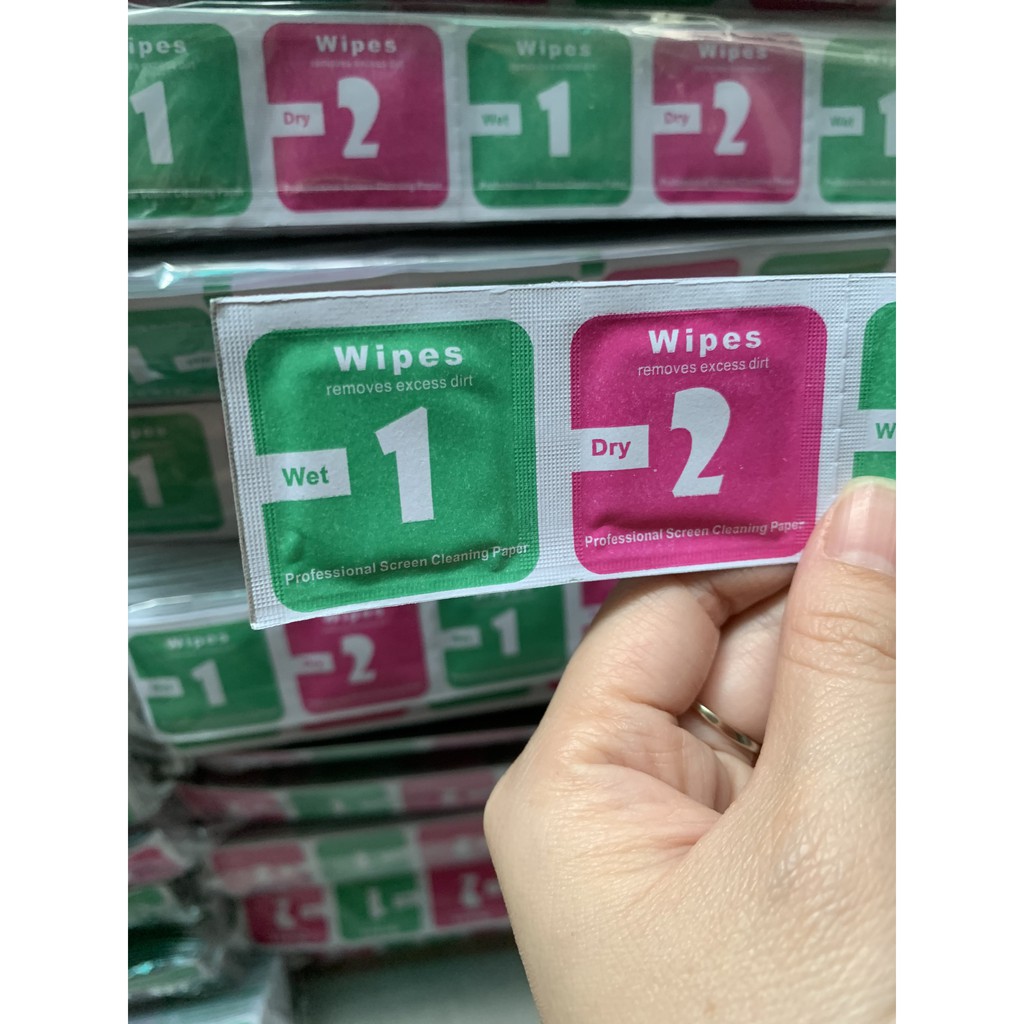 Giấy lau màn hình điện thoại, ipad, máy tính bảng để dán cường lực , lau mặt kính mắt....gồm:1 tấm ướt ( số 1) lau trước