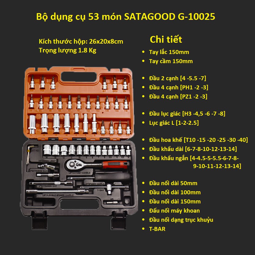 [DEAL HOT]Bộ dụng cụ SATAGOOD cao cấp 53 món