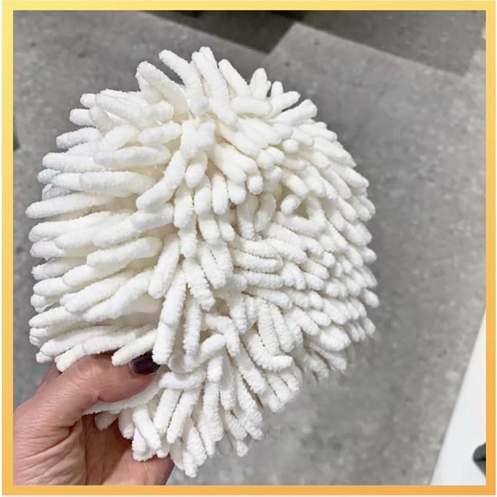 - Vải hai mặt làm từ sợi chenille dài, xoa nhẹ, bàn tay ướt sẽ khô ngay lập tức. Chỉ trong vài giây, hơi ẩm giữa các ngón tay nhanh chóng được hút sạch bởi quả cầu. Chất liệu polyurethane hút nước tích hợp với Khả năng đàn hồi cao và độ bền kéo tuyệt vời, độ hút nước lên đến 400ml.