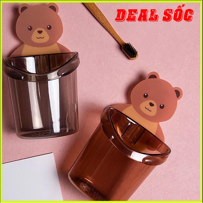 [Deal Sốc ] Cốc Gấu Dán Tường Để Bàn Chải Đánh Răng Hình Gấu Có Lỗ Thoát Nước Siêu Dính Siêu Tiện Lợi