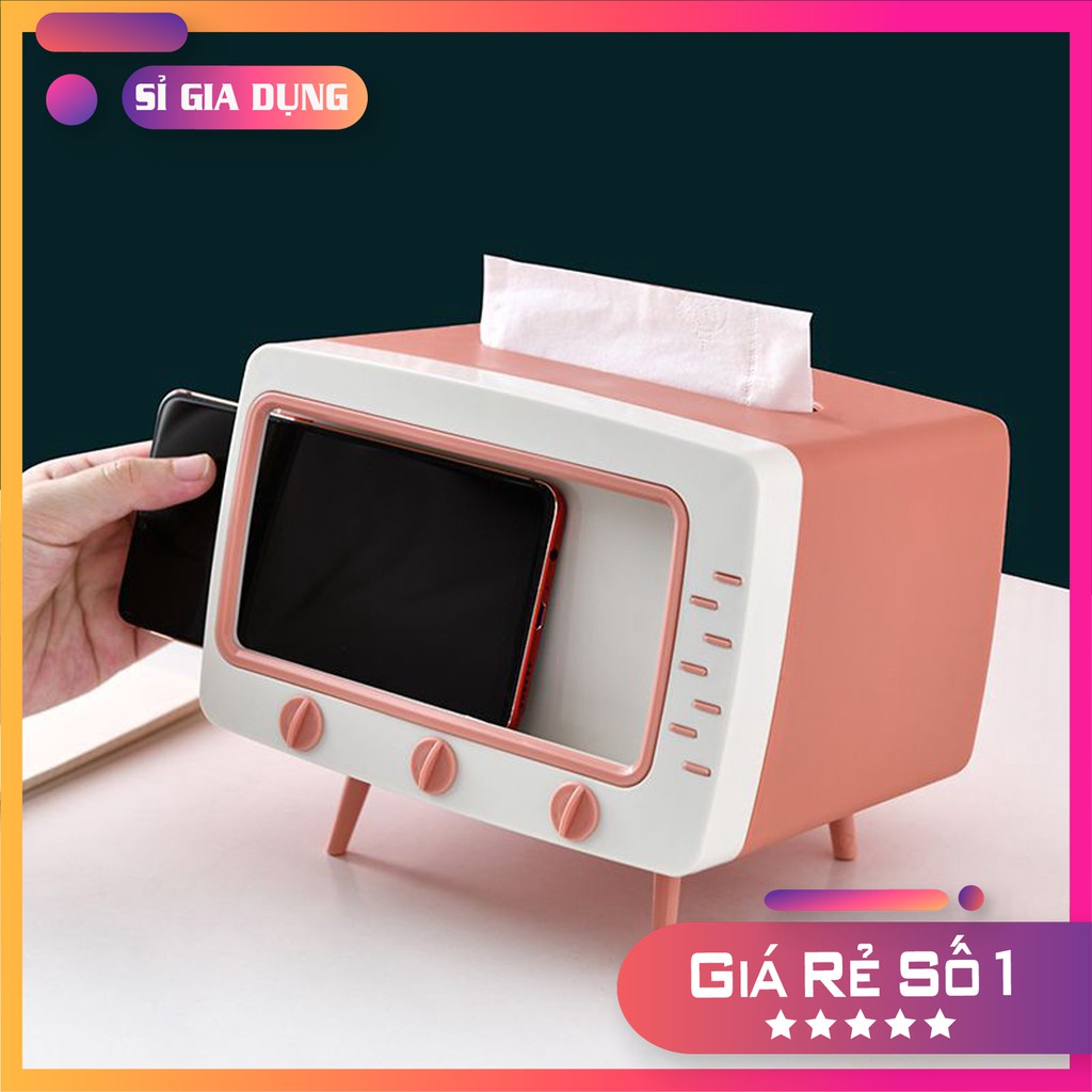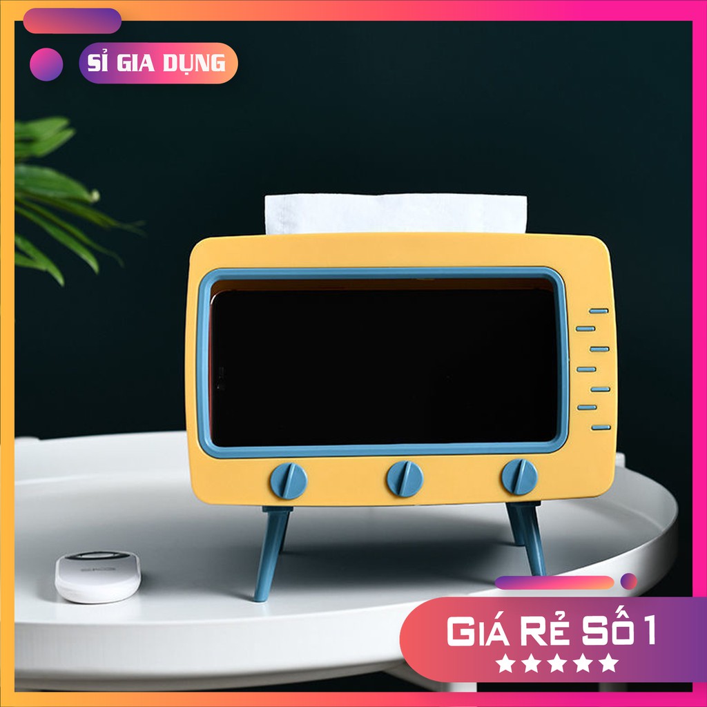 Nhà cửa & Đời sống > Sắp xếp nhà cửa > Hộp khăn giấy || ❤️DEAL SỐC⚡️FREESHIP]❤️ Hộp đựng khăn giấy ăn để bàn mô hình tivi, đựng đa ,năng Kiêm Giá đỡ điện thoại 2in1 Tiện DụngCòn hàng