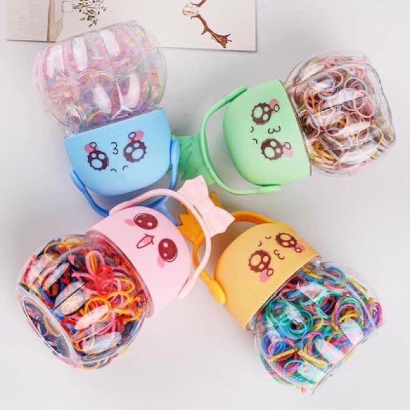 Hộp chun buộc tóc cho bé, chun buộc tóc sợi nhiều màu đựng trong hộp nhựa đáng yêu