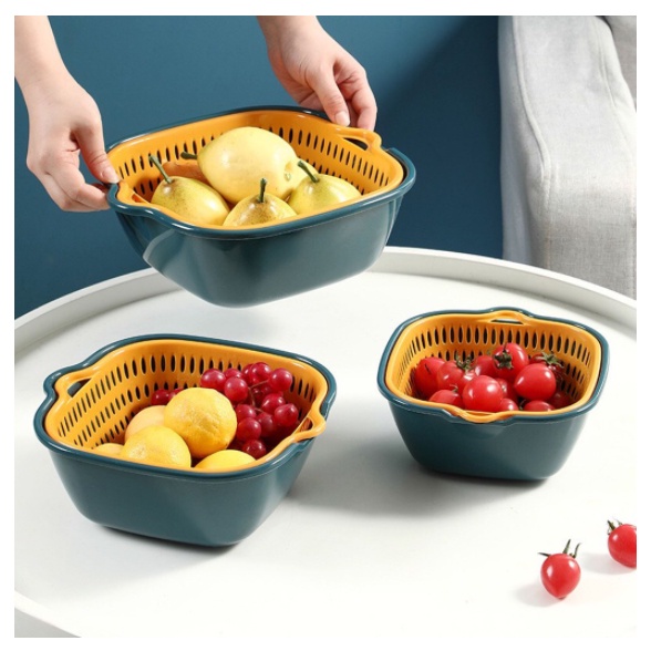 ✅Rổ nhựa kèm chậu có thiết kế hình tròn bạn có thể dùng để đựng các loại trái cây, rau củ, thịt, cá...