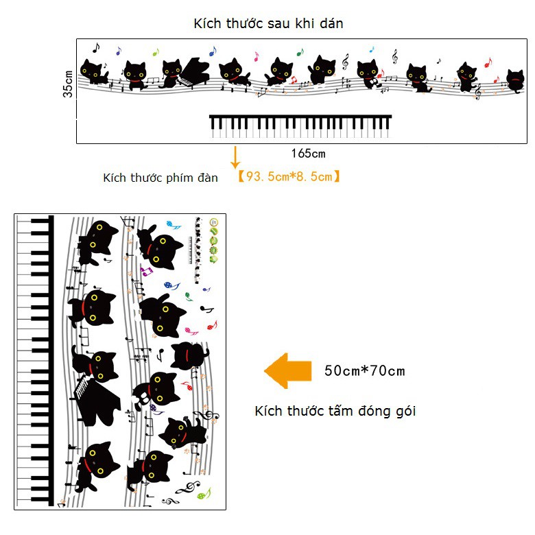 Giới thiệu Decal dán tường Âm nhạc 6 - Đàn mèo tinh nghịch