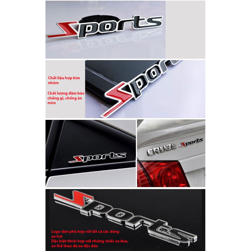 - Tem chữ Sports kim loại hay dùng để dán trang trí đuôi xe ô tô, sườn xe ô tô.