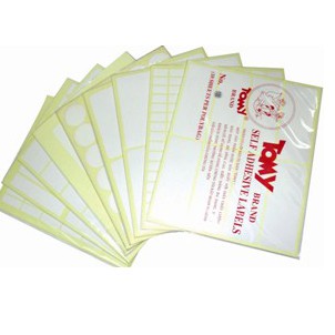 Decal Tomy A5 (từ mã số 99 đến 124)- Giấy dán nhãn Tomy A5 là loại giấy decal khổ giấy A5, chia thành nhiều miếng nhỏ, có lớp keo tự dính, được sản xuất với giấy chất lượng tốt, có độ dính cao, bề mặt giấy trắng bóng, dùng in trên máy in Laser đen trắng