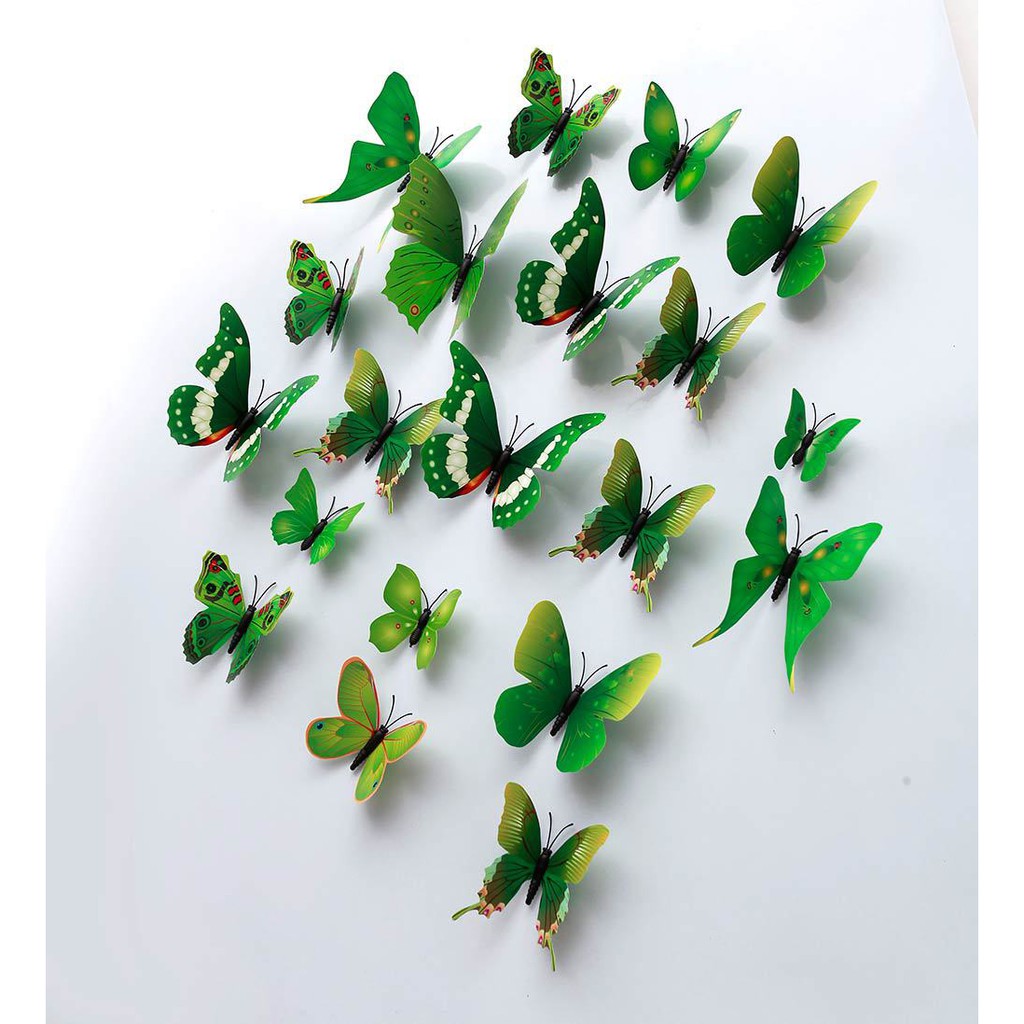 Decal trang trí nhà cửa bộ 12 con bướm các màu lấy màu bất kỳ.