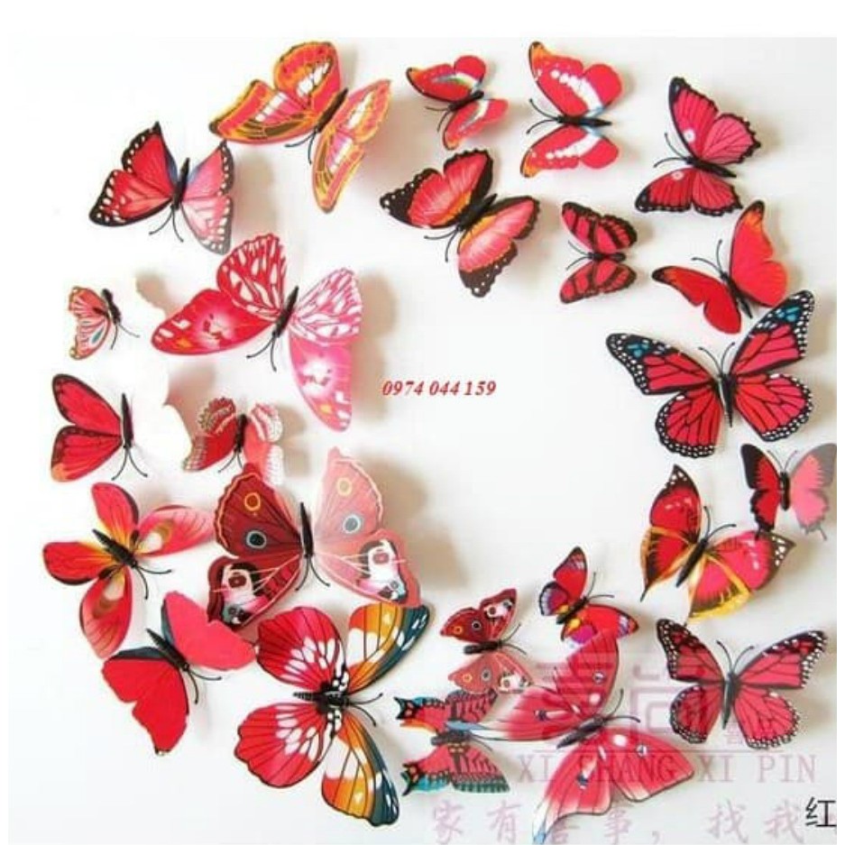 Giới thiệu Decal trang trí nhà cửa bộ 12 con bướm các màu lấy màu bất kỳ.