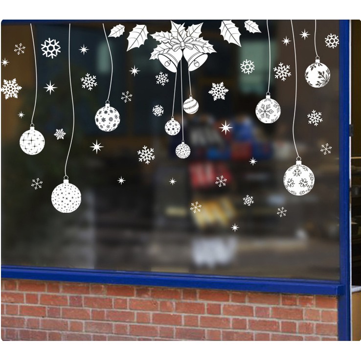 Decal trang trí noel rèm trái châu và chuông trắng