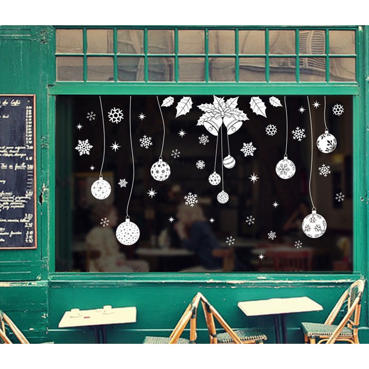 Giới thiệu Decal trang trí noel rèm trái châu và chuông trắng