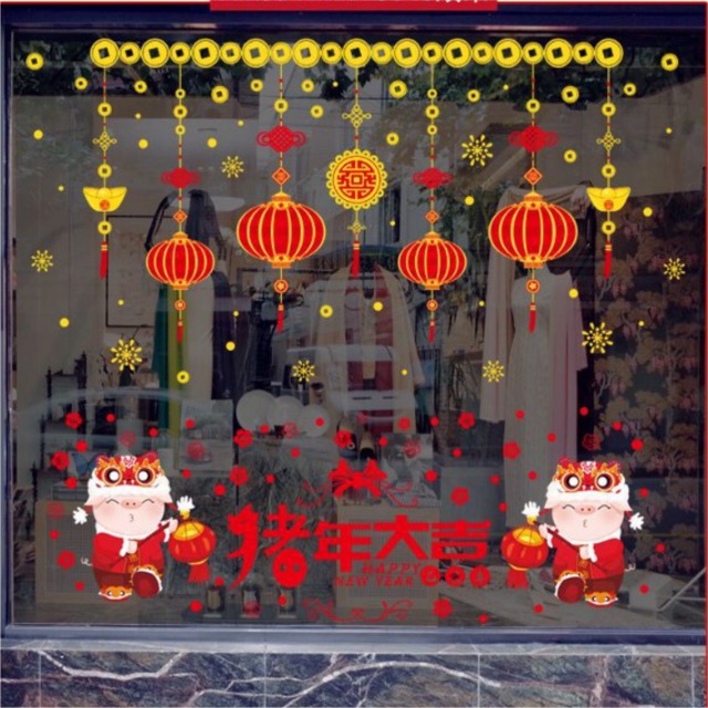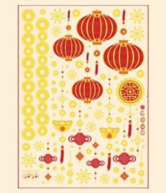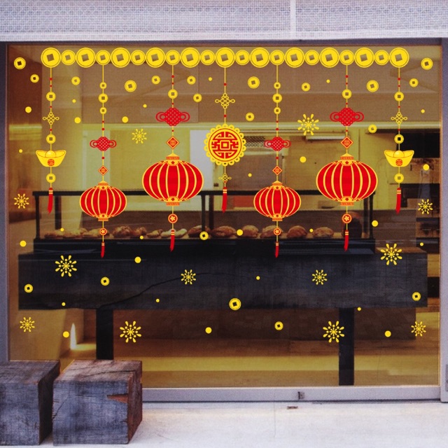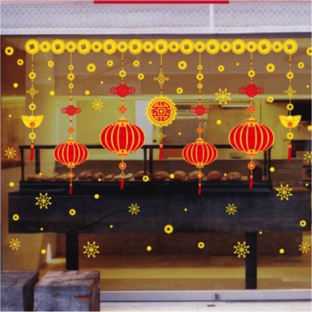 Giới thiệu Decal Trang Trí Tết Hai Mặt Hít Tĩnh Điện Không Dơ Kính- Rèm dây lồng đèn đỏ viền Vàng
