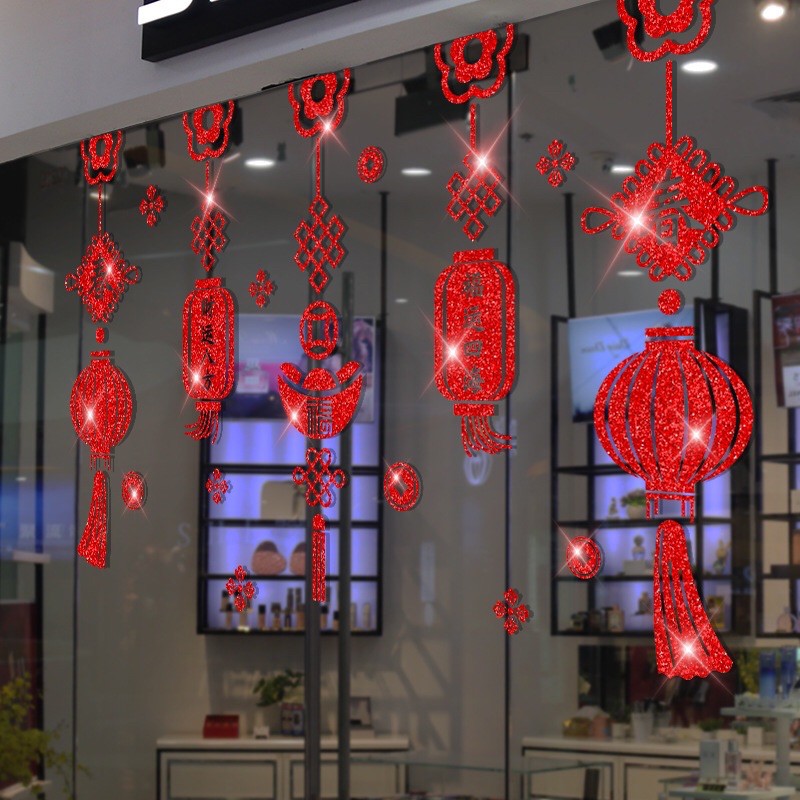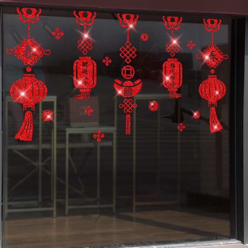 Giới thiệu Decal trang trí tết - Rèm dây lồng đèn nhũ kim tuyến đỏ