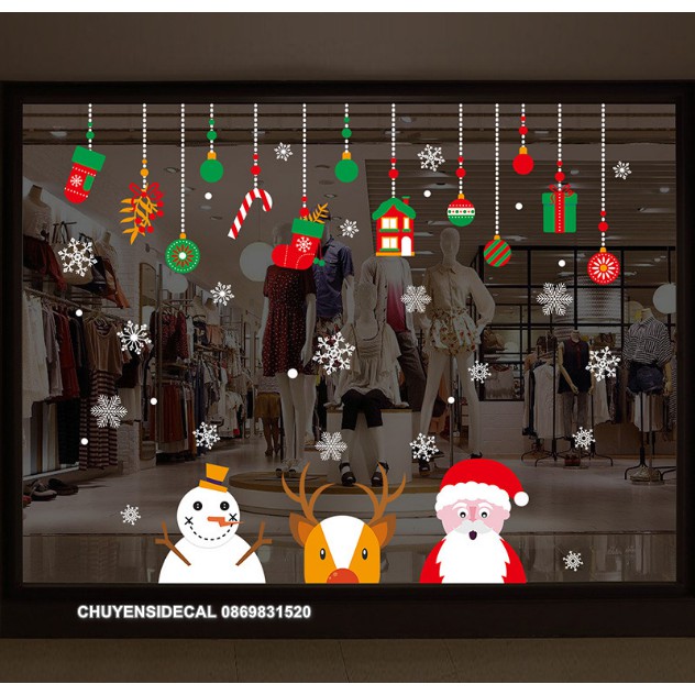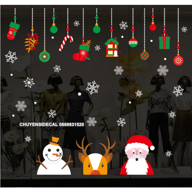 Giới thiệu Decal trang trí tường Noel - Rèm dây xanh đỏ và 3 nhân vật đón lễ