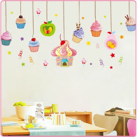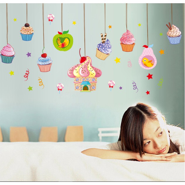 Giới thiệu Decal trang trí tường - Rèm Dây Treo Bánh CUPCAKE cho Bé