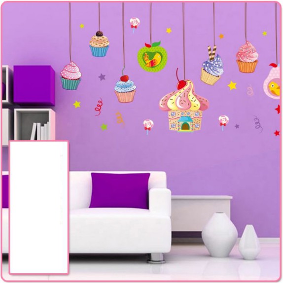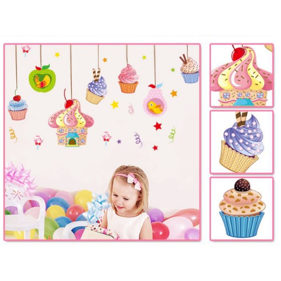 Decal trang trí tường - Rèm Dây Treo Bánh CUPCAKE cho Bé