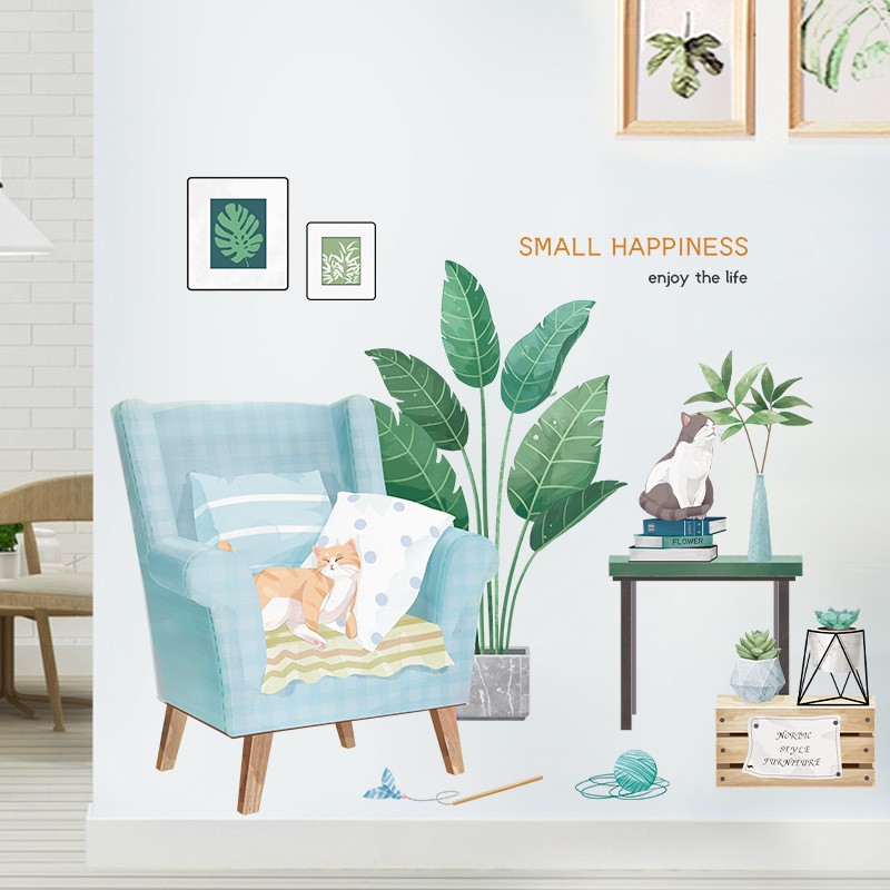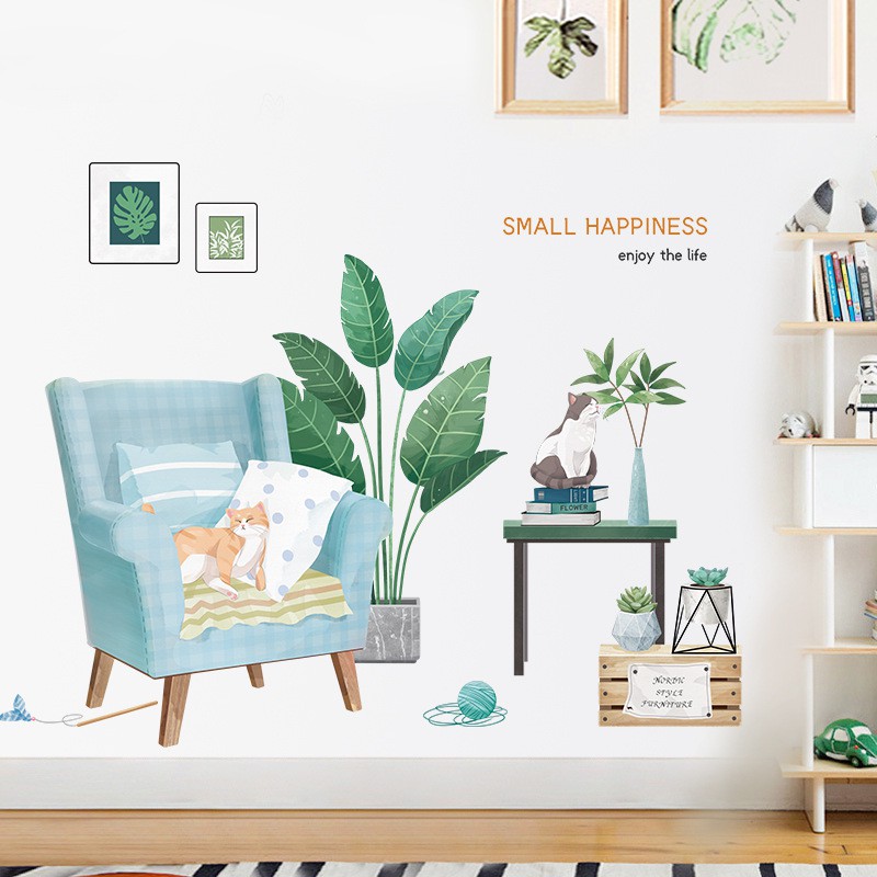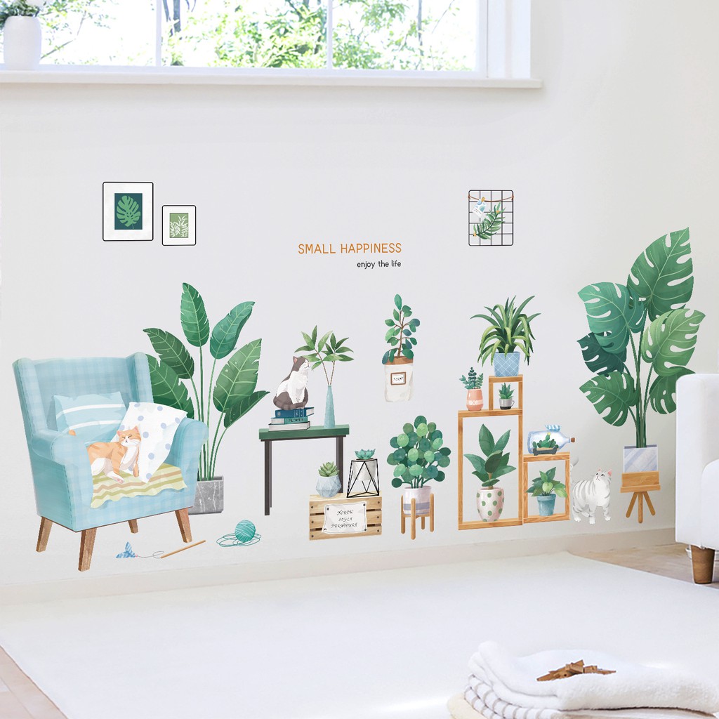 Decan trang trí tường tiểu cảnh mảng xanh phong cách Hàn Quốc - decalamyshop