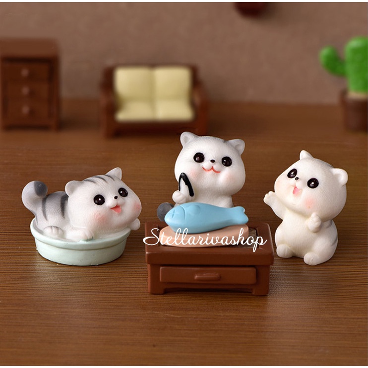 Decor bàn học mô hình mèo ú siêu quậy trang trí tiểu cảnh, terrariumSize : ~3.5cm