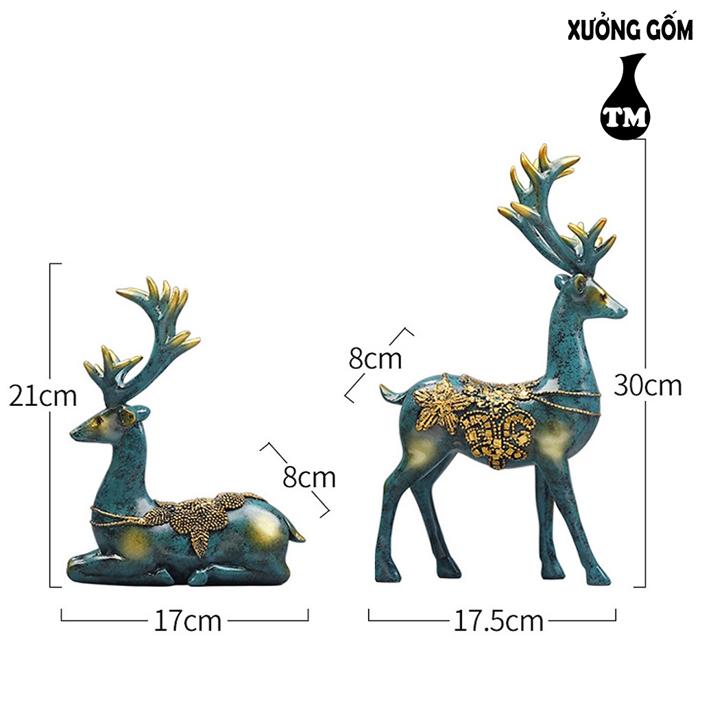 Decor Để Bàn Trang Trí Phong Thủy - Cặp Tượng Hươu Nai Phòng Khách, Phòng Làm Việc Xưởng Gốm TM