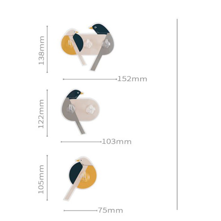 MÔ TẢ CHI TIẾT SẢN PHẨM:- Kích thước: 10.5*7.5cm (1móc), 12.2*10.3cm (2móc) 13.8*15.2cm (3móc)