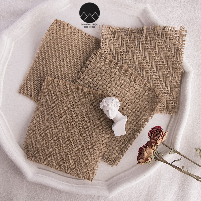 Decor phụ kiện chụp ảnh, miếng vải sợi đay decor chụp son, chụp ảnh mỹ phẩm, chụp hình nước hoa, chụp trang sức vintage