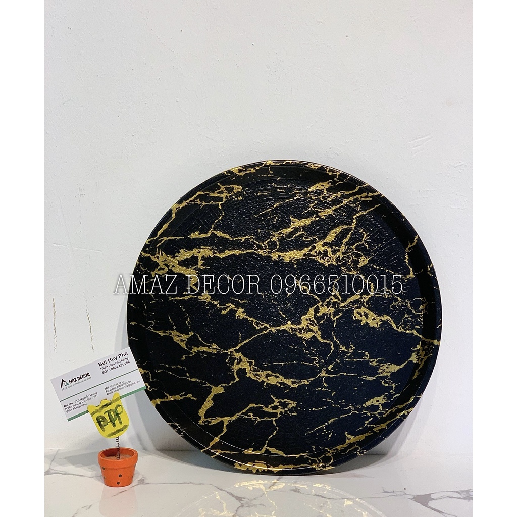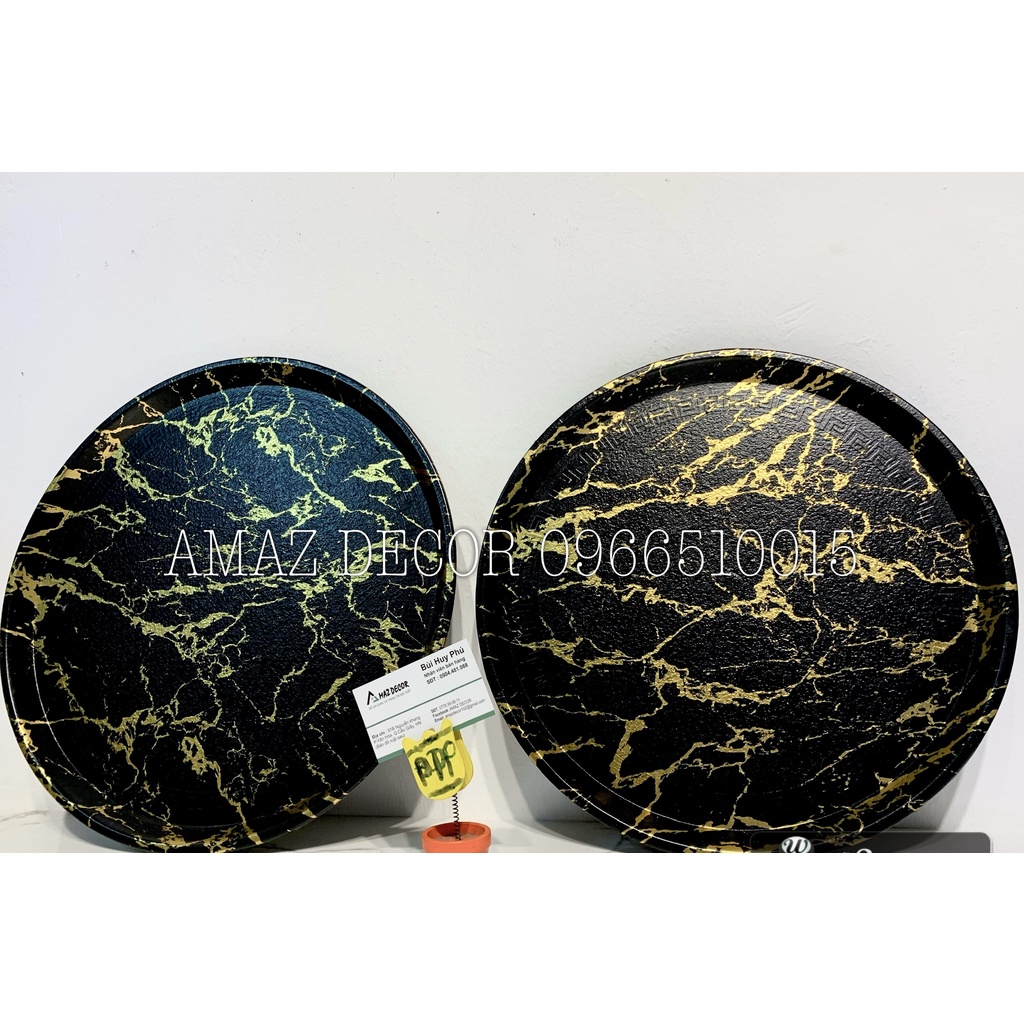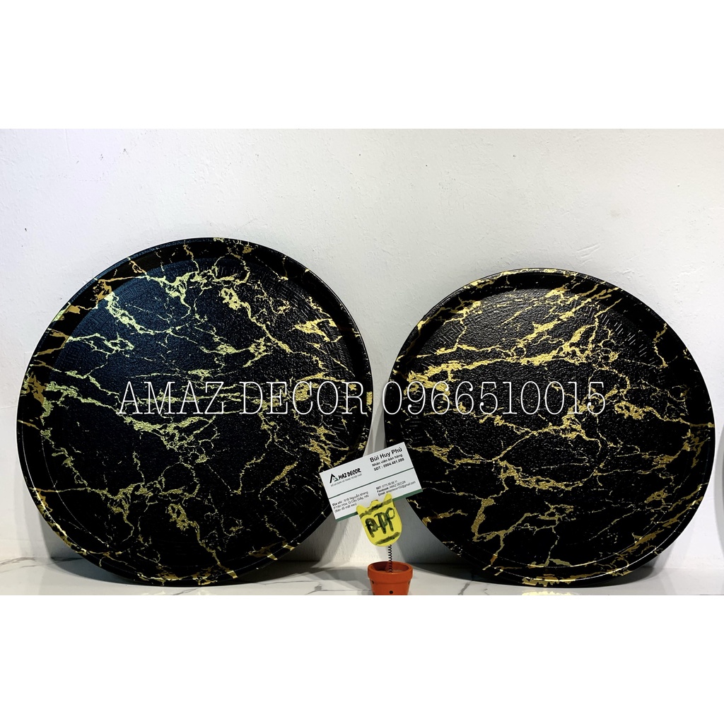 Giới thiệu Đồ decor xuất dư Giá sỉ Khay đựng ấm chén cốc tách ly bình nước bằng nhựa phíp chống trơn vân đá đẹp cao cấp hình tròn
