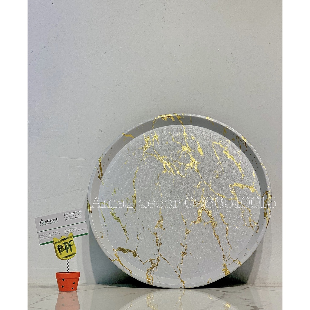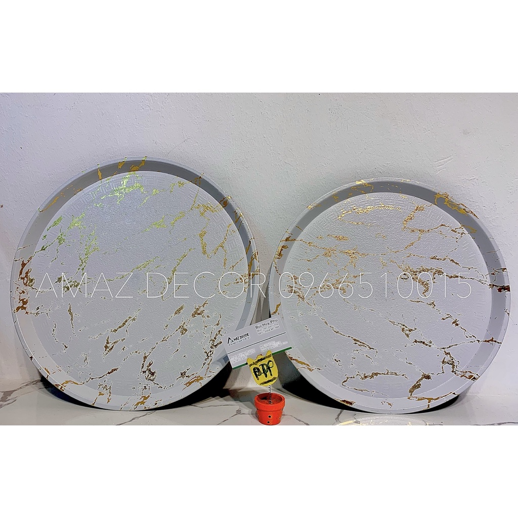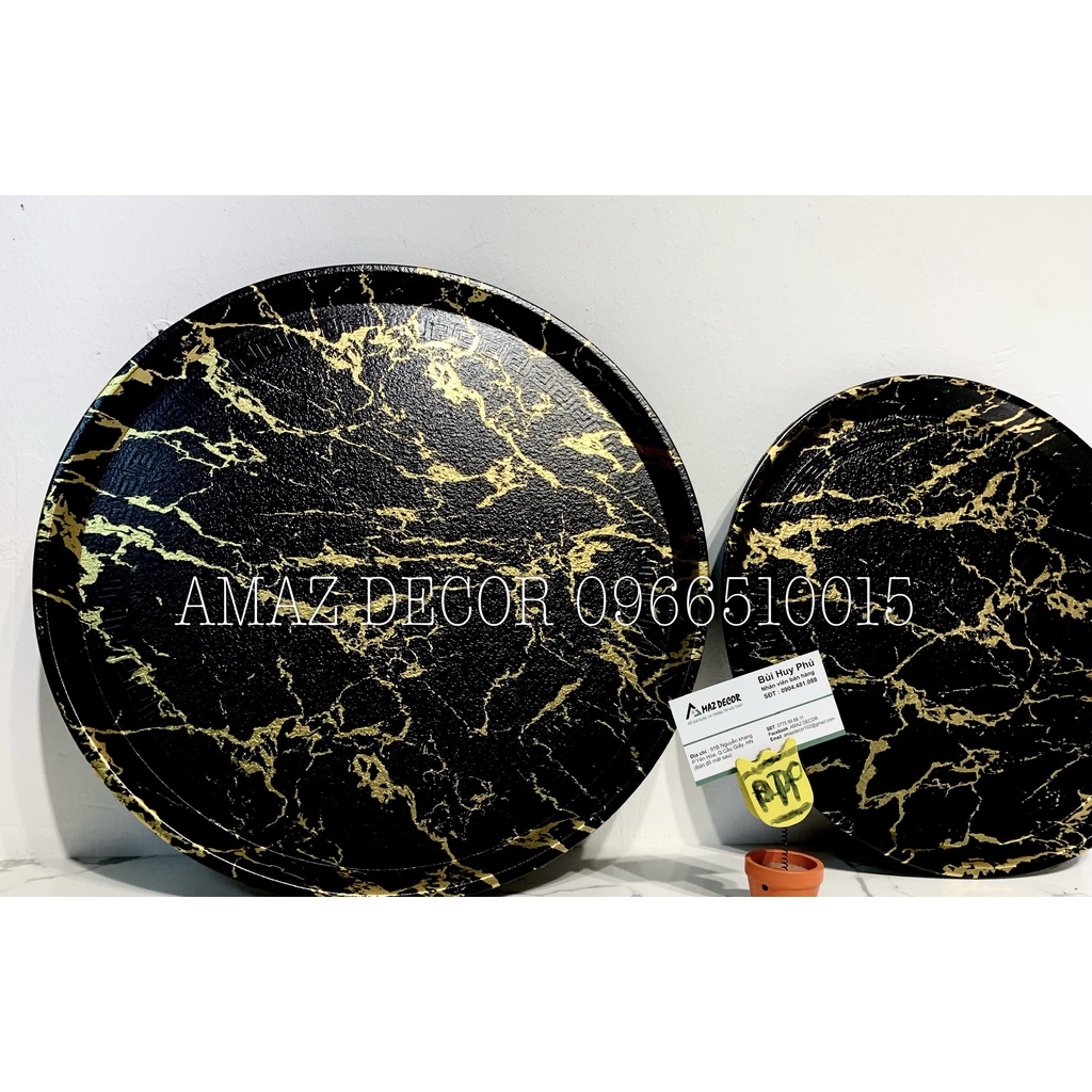 Giới thiệu Đồ decor xuất dư Giá sỉ Khay đựng ấm chén cốc tách ly bình nước bằng nhựa phíp chống trơn vân đá đẹp cao cấp hình tròn