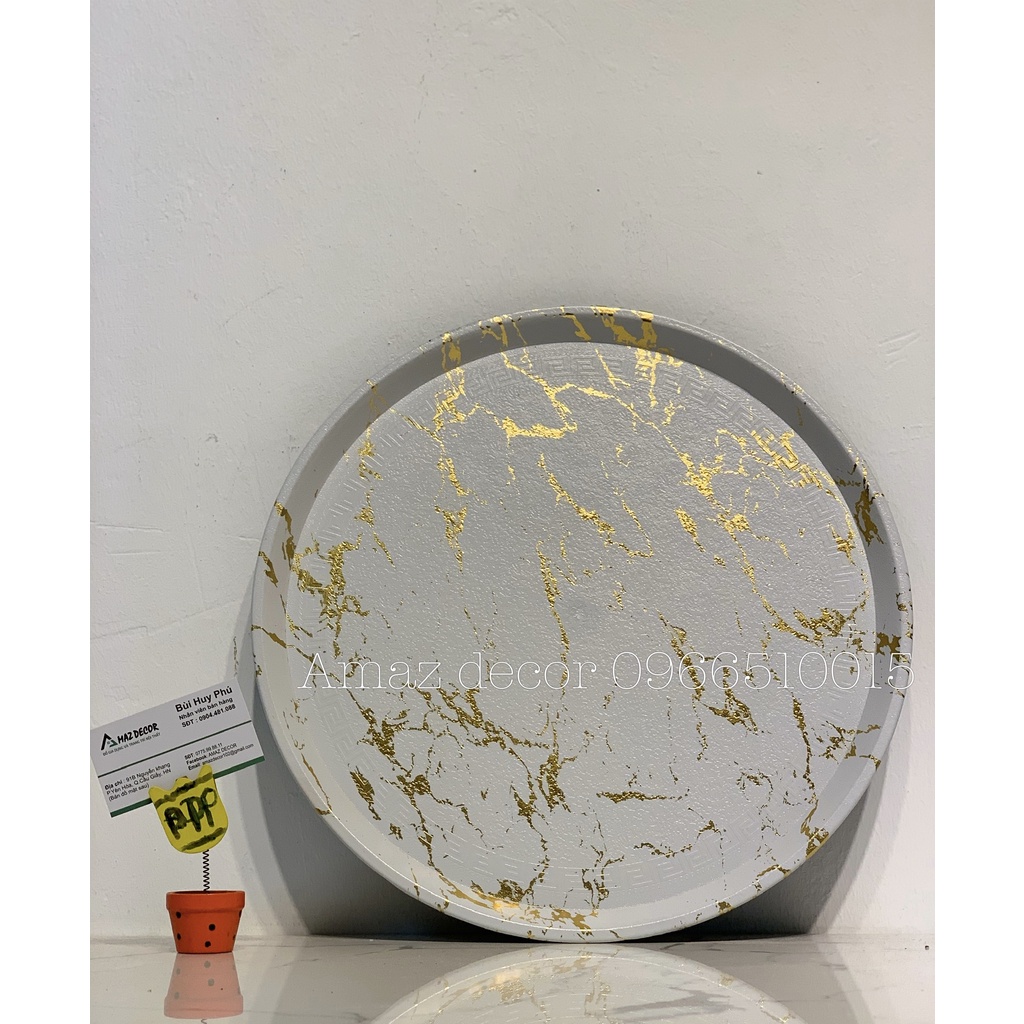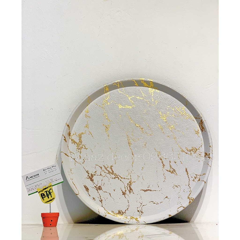 Đồ decor xuất dư Giá sỉ Khay đựng ấm chén cốc tách ly bình nước bằng nhựa phíp chống trơn vân đá đẹp cao cấp hình tròn