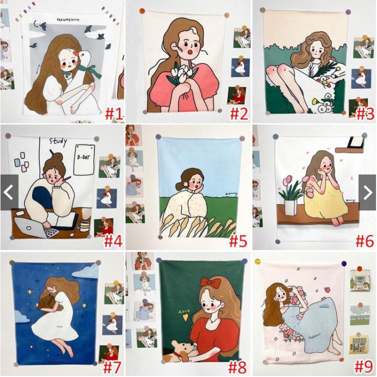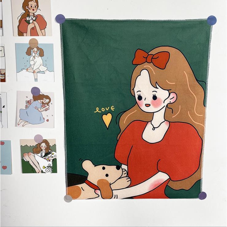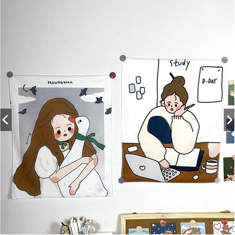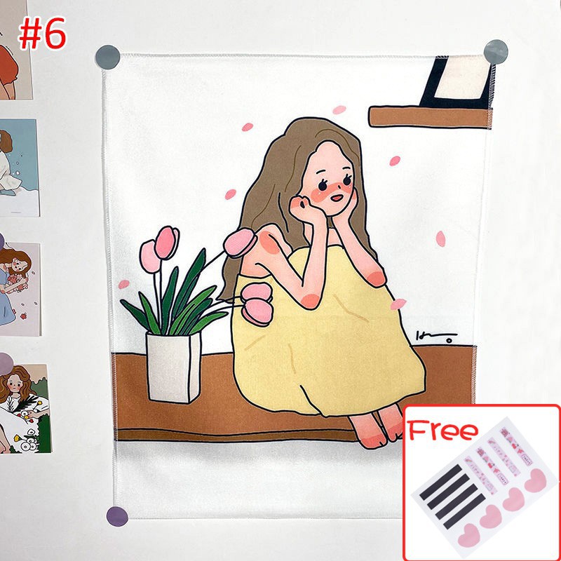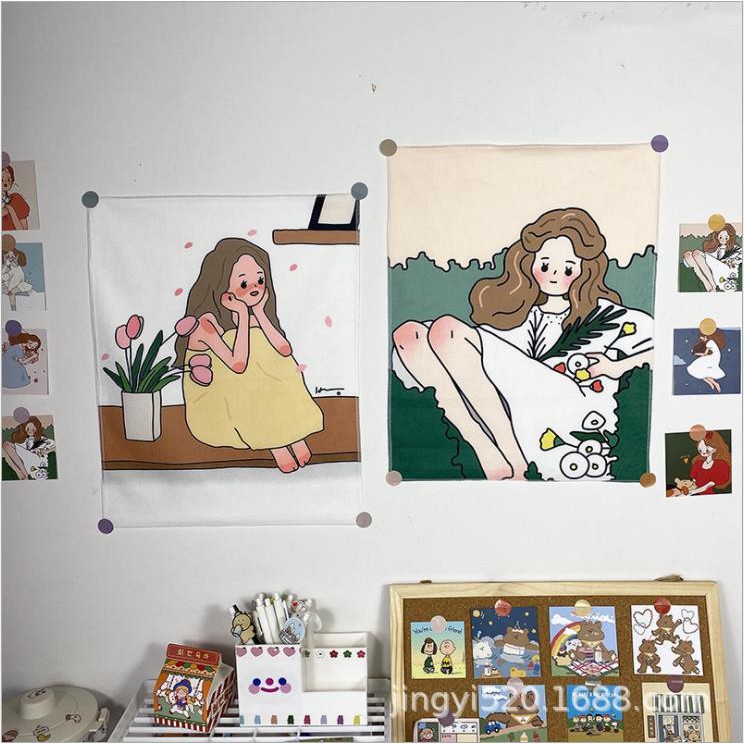 Nhà cửa & Đời sống > Nội thất > Kệ & Giá || DecorZ Vải treo tường hoạ tiết hình CÔ GÁI xinh xắn trang trí không gian nhà cửa, phòng ngủ, phòng làm việcCòn hàng