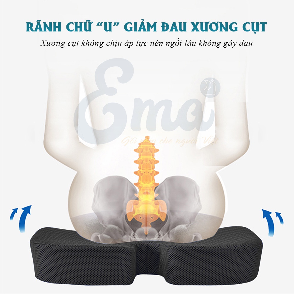 Đệm chống đau xương cụt Ema - Giảm đau xương cụt, ê mông, thâm mông, xệ mông cho dân văn phòng, lái xe
