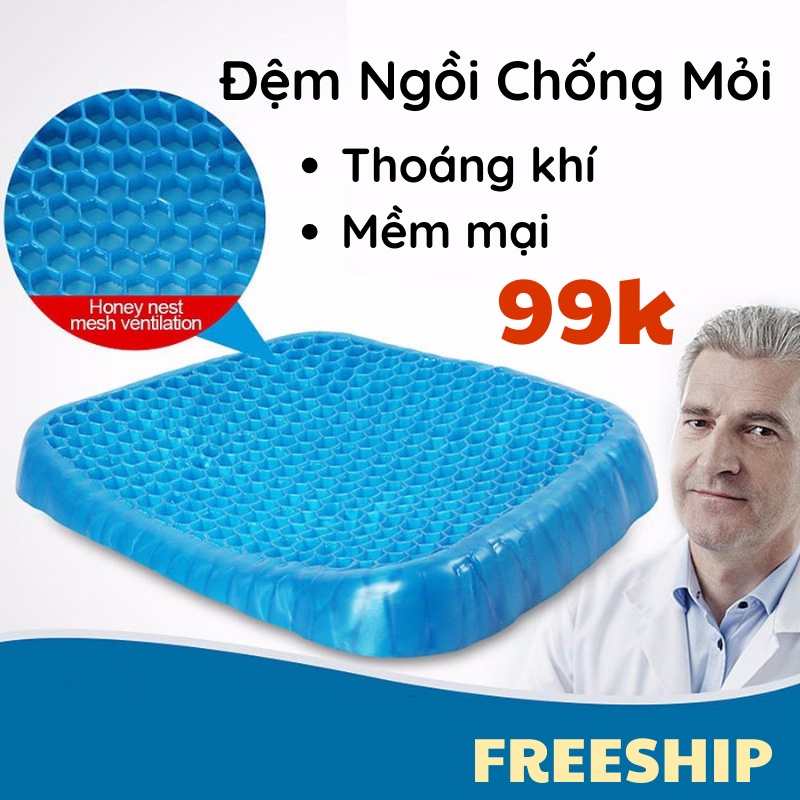 - Thiết kế tổ ong thoát khí trong toàn bộ đệm, giữ mát, ngăn ngừa mồ hôi Chống thâm mông do mồ hôi - Chống mụn nhọt và chống bệnh trĩ do phải ngồi nhiều.