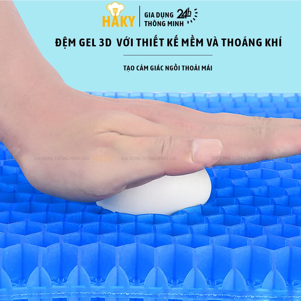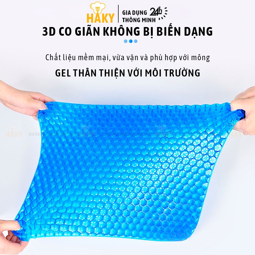 Đệm Gel 3D cao cấp lót ghế ngồi, thế hệ mới HAKY 018, nệm ngồi lót mông thiết kế dạng tổ ong thoáng khí, chất gel bền