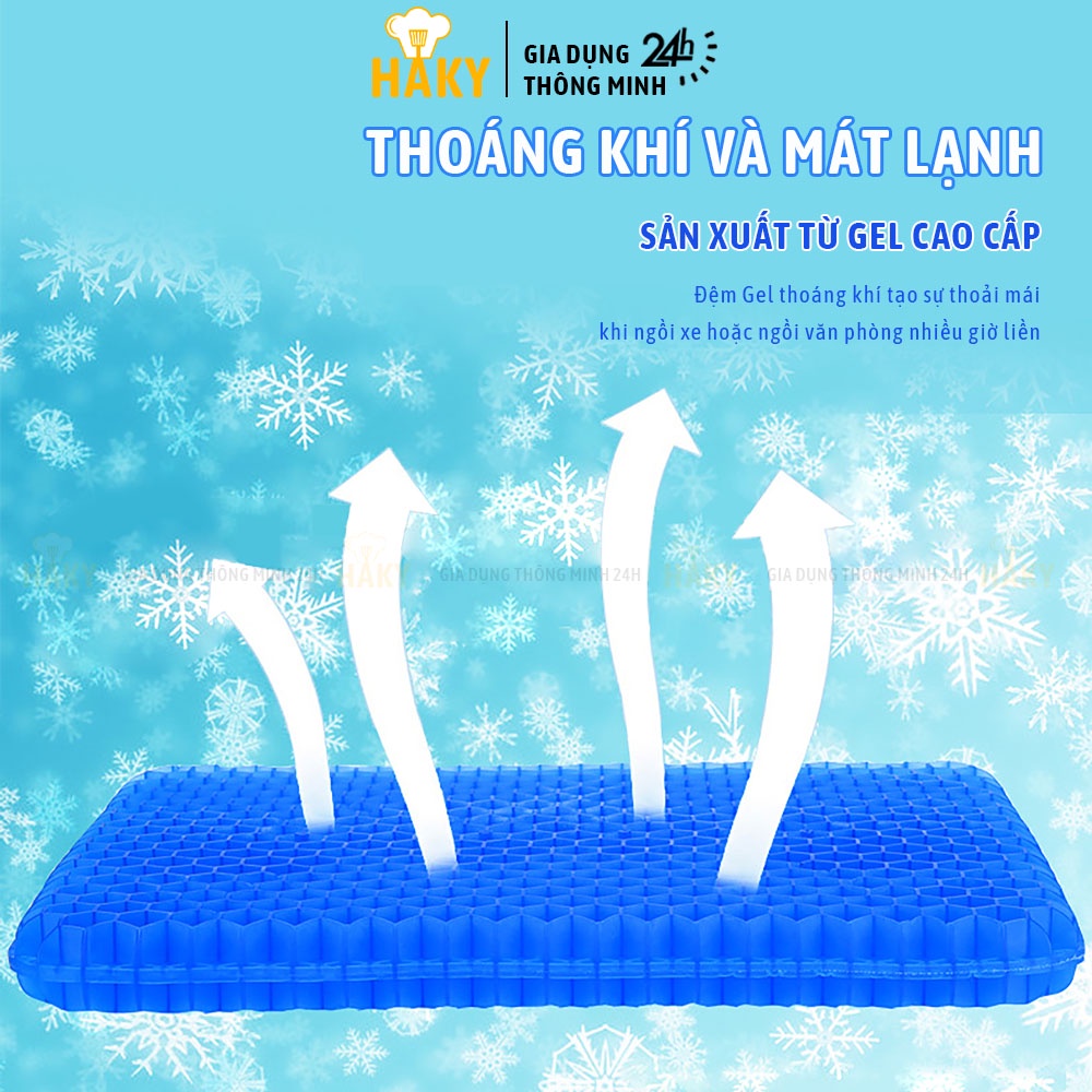 Nhà cửa & Đời sống > Nội thất > Đệm ngồi || Đệm Gel 3D cao cấp lót ghế ngồi, thế hệ mới HAKY 018, nệm ngồi lót mông thiết kế dạng tổ ong thoáng khí, chất gel bềnCòn hàng