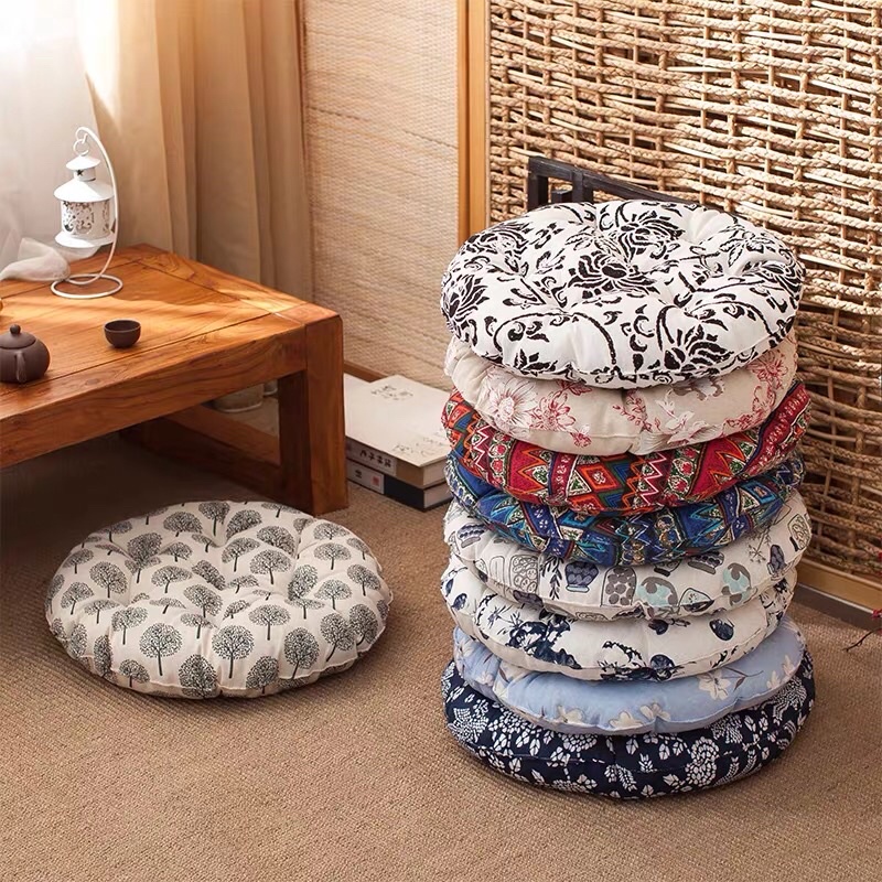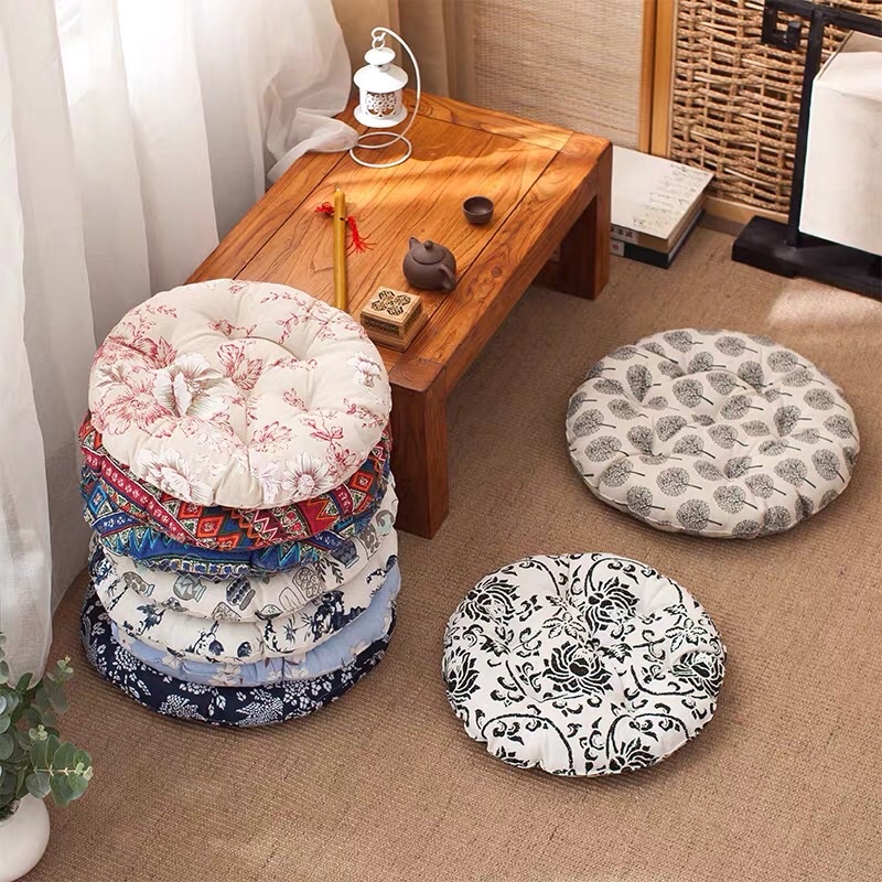Đệm ghế, đệm ngồi bệt, gối tựa hình tròn nhiều họa tiết kích thước 45x45