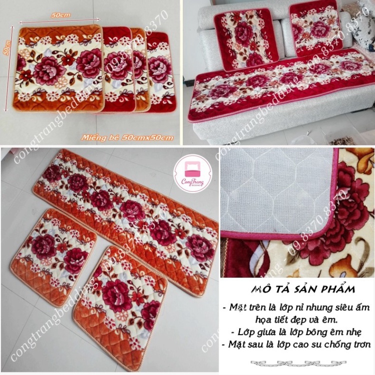 Nhà cửa & Đời sống > Nội thất > Đệm ngồi || Đệm ghế nhung, đệm ghế sofa, thảm ghế nhung nỉ trần 3 món loại đẹp - Mặt sau chống trơn trượt M1Còn hàng