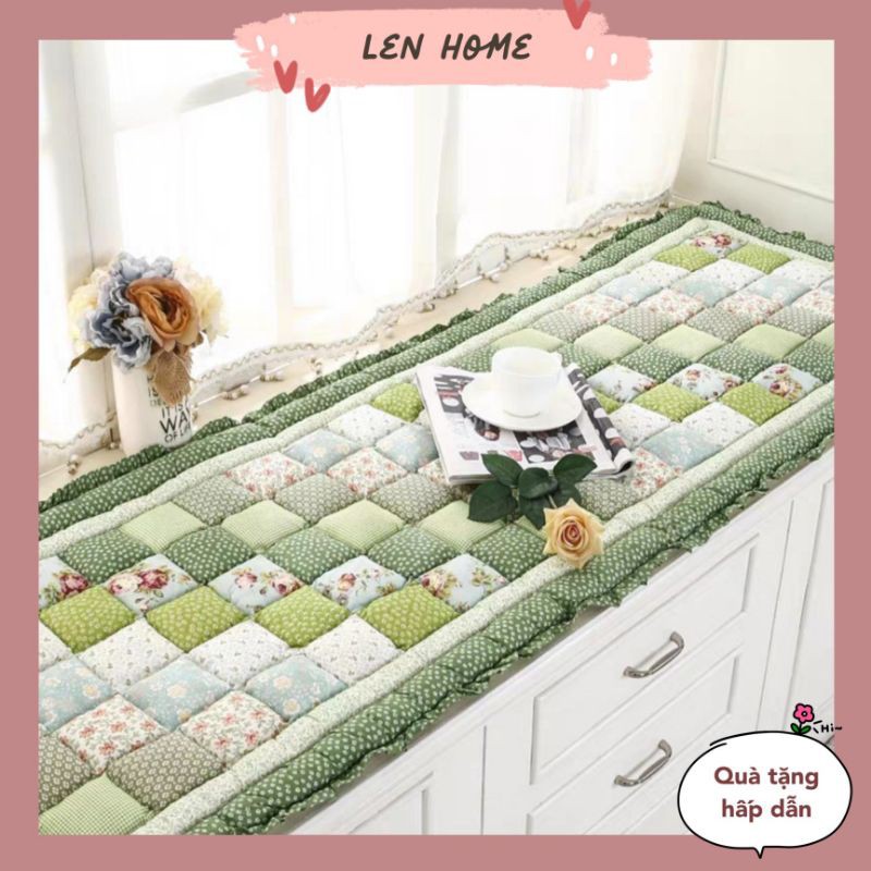 Đệm ghế quilting phong cách Hàn hoạ tiết hoa nhí vintage decor phòng cửa sổ thảm lót sàn gỗ cotton lenhome retro kiểu âu