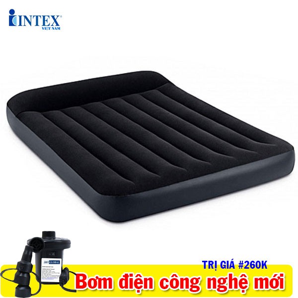 Giới thiệu [LIFEMALL25055 - 15% đơn 250K] Đệm hơi hơi đôi rộng 1m37 công nghệ kèm gối đầu INTEX 64142