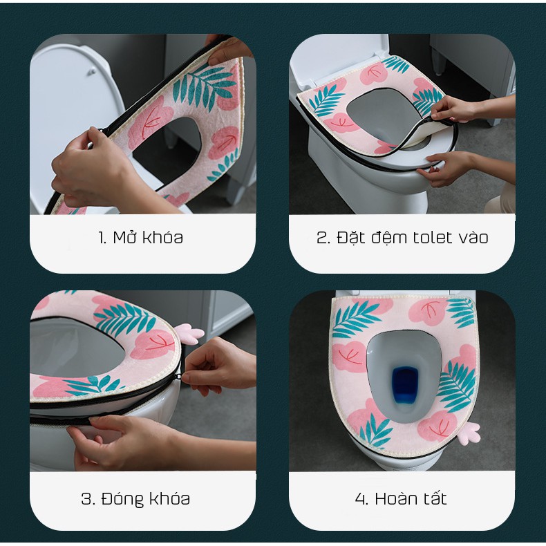 Giới thiệu Đệm Lót Bồn Cầu Vải Nhung Có Tay Cầm Chống Lạnh, Chống Thấm, Tiện Lợi Cao Cấp
