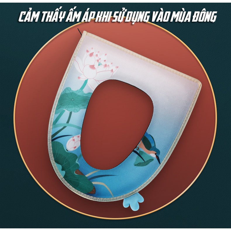 Đệm Lót Bồn Cầu Vải Nhung Có Tay Cầm Chống Lạnh, Chống Thấm, Tiện Lợi Cao Cấp