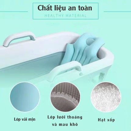 Đệm lót bồn tắm có 3 lớp: vải, phao, lưới. Các chất liệu an toàn và thân thiện với môi trường.Thiết kế cùng dây đeo chắc chắn , cố định đệm vào bồn tắm, có thể điều chỉnh .Sản phẩm nhẹ, thoáng khí, khô nhanh, dễ dàng vệ sinh, vắt khô và phơi ở nơi thoáng mát.
