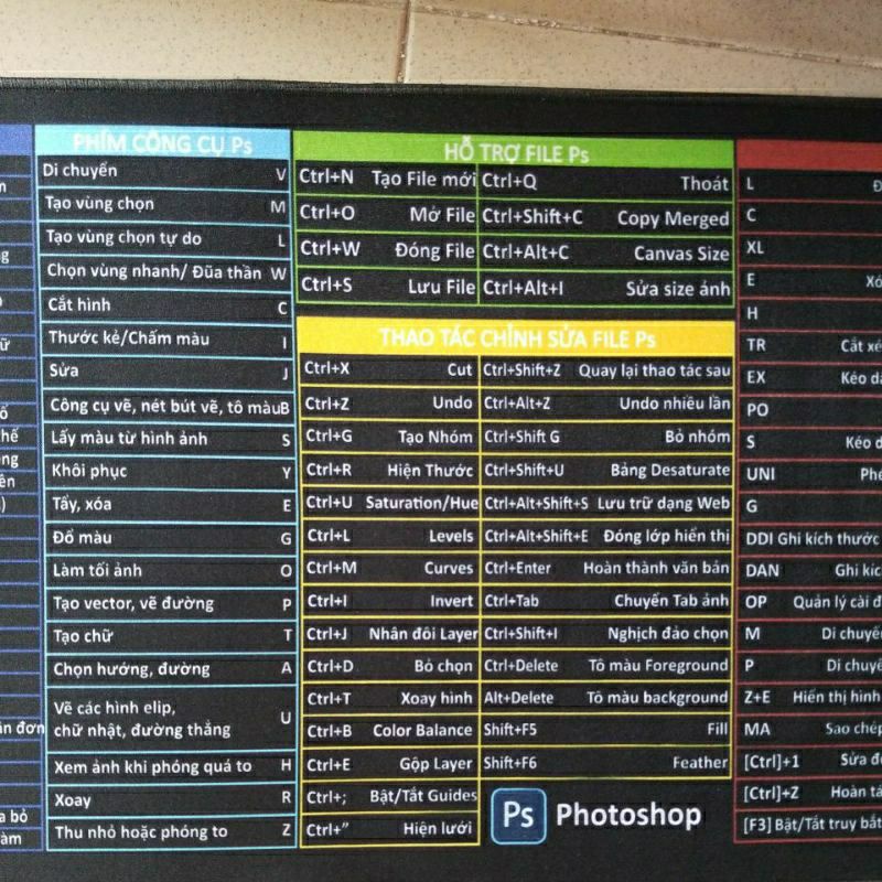 Máy tính & Laptop > Phụ Kiện Máy Tính > Bàn Di Chuột || Đệm lót chuột in các ký hiệu phím tắt cỡ lớn chống nước 30x80 cmCòn hàng