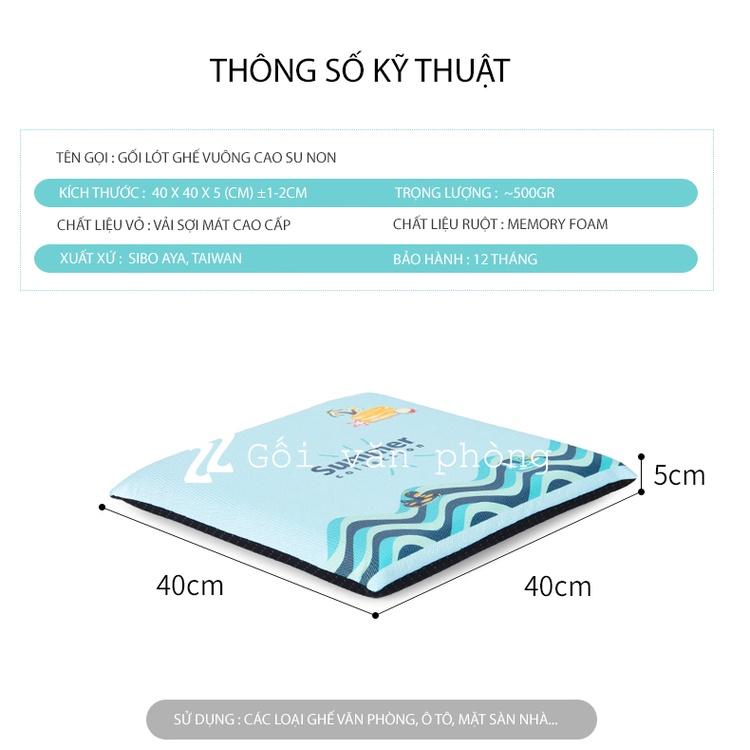 Đệm lót ghế văn phòng cao su non vỏ mát nhiều hình 40x40 ZURI PILLOW GLM-07