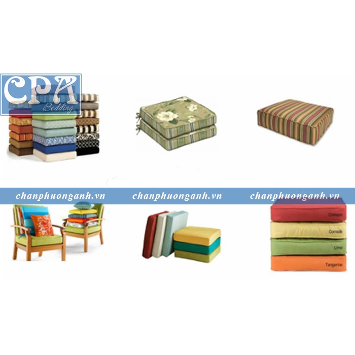 Đệm ngồi:- Đệm lót hình vuông thích hợp dùng làm nệm lót ngồi thiền, ngồi thư giãn, hay nệm lót trang trí trên ghế tựa, ghế mây, ghế bành dùng trong gia đình, trang trí quán café, trà sữa…