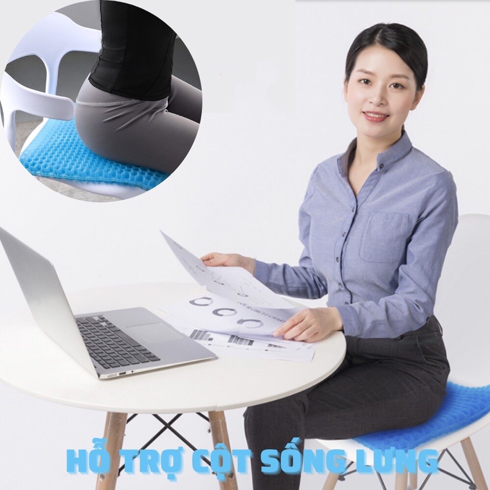 Đệm ngồi thông minh 3D được làm từ GEL SILICON mát lạnh, cấu trúc tổ ong giúp thóng khí, chống trĩ và bảo vệ cột sống, chống thoát vị đĩa đệm.