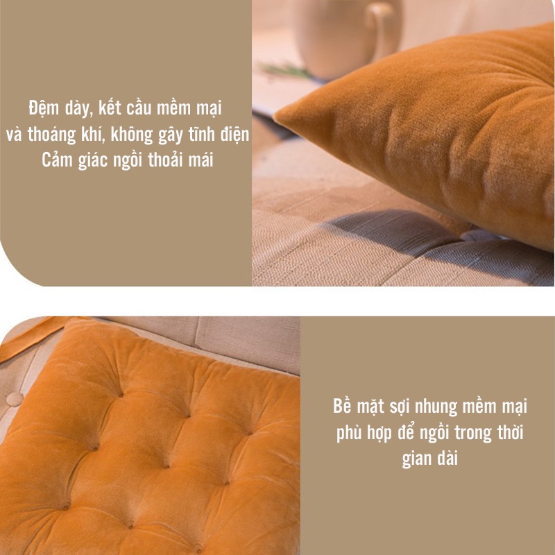 Đệm Ngồi Bệt, Đệm Ghế Văn Phòng - Vải Nhung Ấm Áp Sang Trọng Với 2 Đầu Dây Đai Cố Định - Đệm Lưng Chống Mỏi VSeat