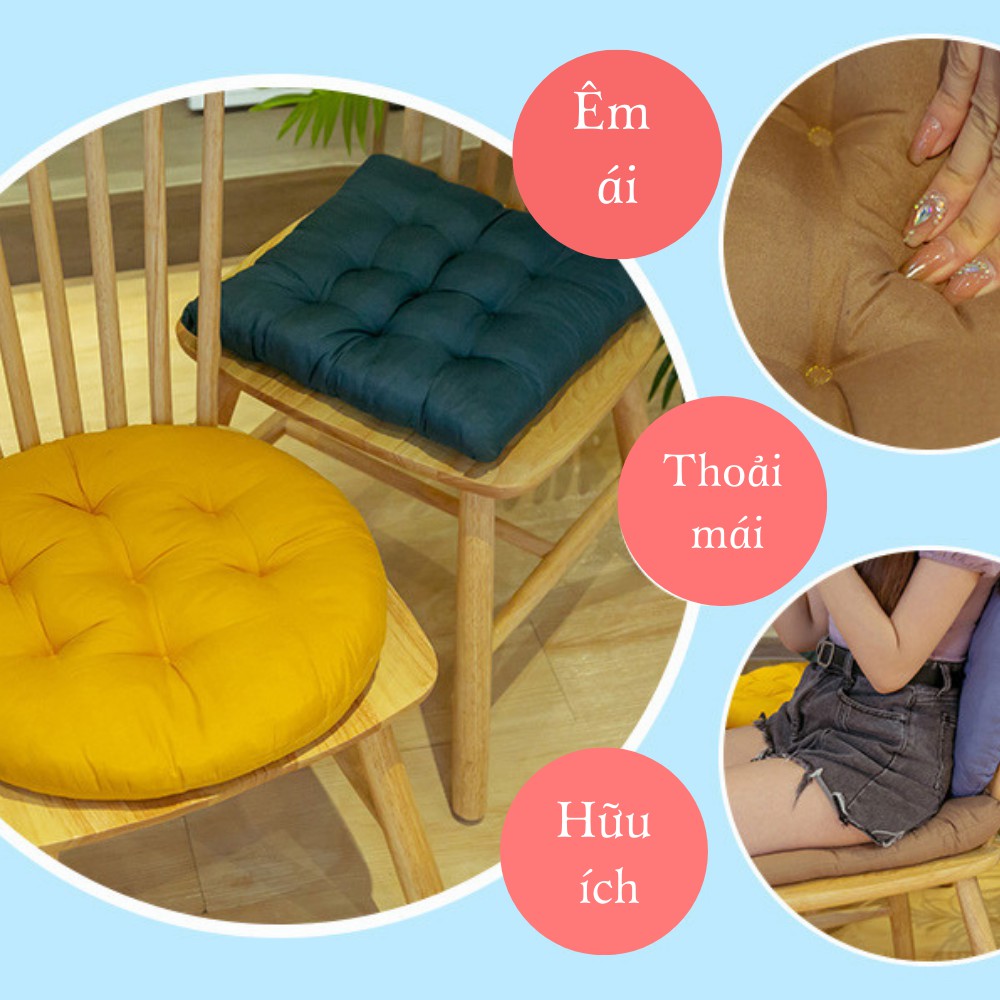 💦 KIỂU DÁNG: THIẾT KẾ HÌNH TRÒN NĂNG ĐỘNG , THÍCH HỢP ĐỂ TRÊN GHẾ HOẶC ĐỂ BỆT- Chất liệu : lớp nệm được may bằng vải cotton 100% rất thoáng mát, chống thấm nước , ngăn bụi ,không đổ lông