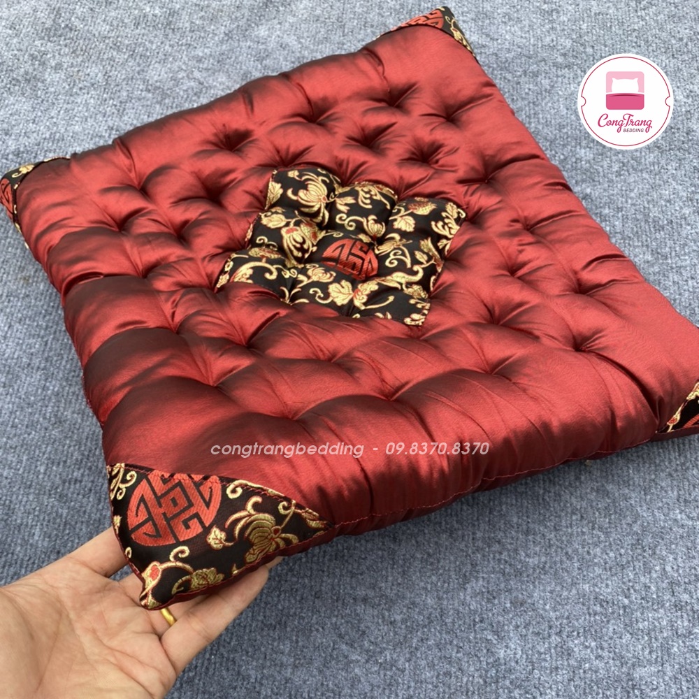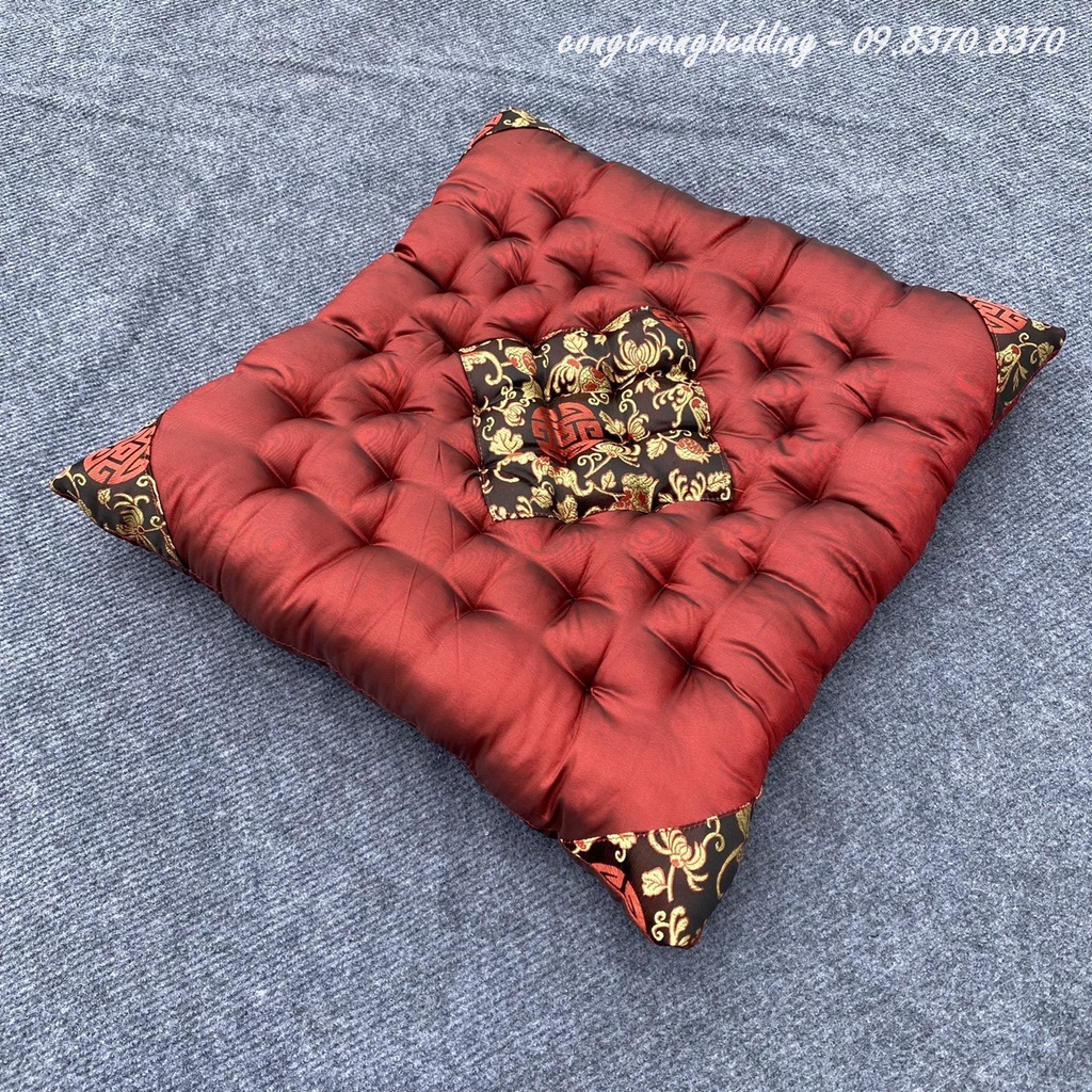 Đệm ngồi bệt gấm thêu vi tính, nệm ngồi thiền vải đũi, trang trí quán cafe, trà chanh - Size 40cm x 40cm