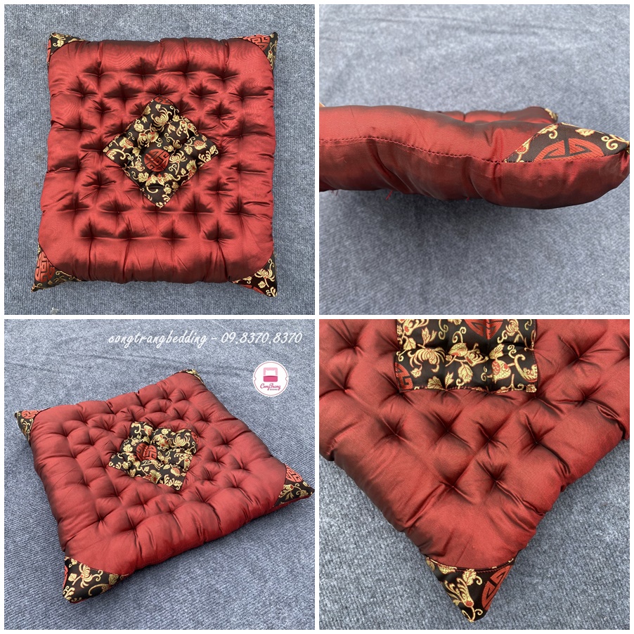 Giới thiệu Đệm ngồi bệt gấm thêu vi tính, nệm ngồi thiền vải đũi, trang trí quán cafe, trà chanh - Size 40cm x 40cm