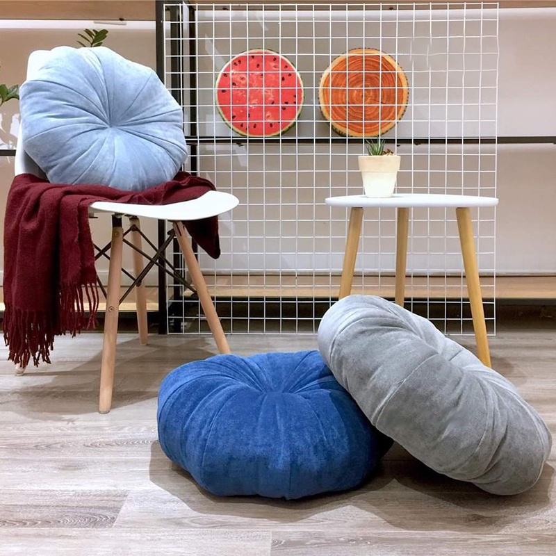 Nhà cửa & Đời sống > Nội thất > Đệm ngồi || Đệm Ngồi Bệt - Gối Ngồi Bệt Trang Trí Cao Cấp Hình Bí Ngô Vỏ Nhung, Kích Thước 45cm, Dày 10cm Lõi Bông Đầy Đặn - VseatCòn hàng